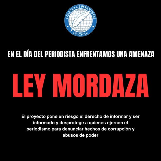 En el Día del Periodista y al conmemorarse el 69° aniversario de la creación de nuestra orden profesional, el Consejo Regional Los Ríos del Colegio de Periodistas de Chile, se declara en estado de alerta y profunda preocupación ante el grave retroceso democrático que representa el avance legislativo de la llamada “Ley Mordaza”.